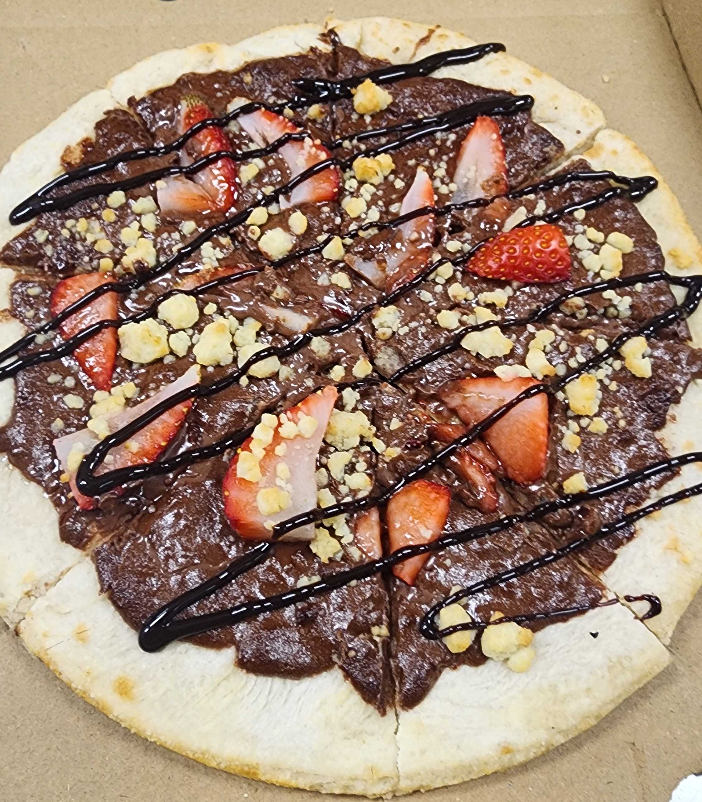 KITKAT PIZZA - Strawberry$25KITKAT® spread with its perfect blend of the rich high-quality chocolate and crispy wafer pieces, sliced strawberry, streusel crumbs & choc fudge sauce×